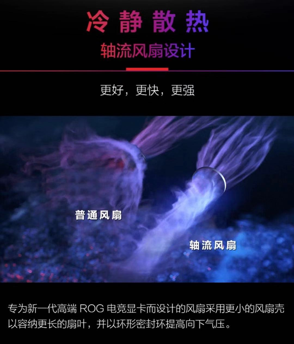 官方表示,新一代图形卡采用2.7倍的插槽宽度设计,并采用了增强的精密处理镜面直接触摸设计,与上一代图形卡相比,散热性得到了改善!
