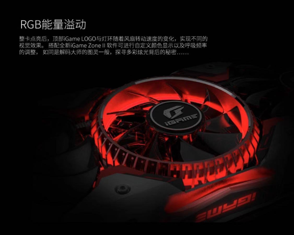 散热采用5个8mm热导管和90mm大直径风扇叶片设计. 炫酷的灯光效果也是Colorful RTX 2070S的魅力!