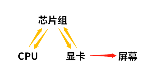 与CPU的数据交换中还有一个链接,这自然会影响效率.