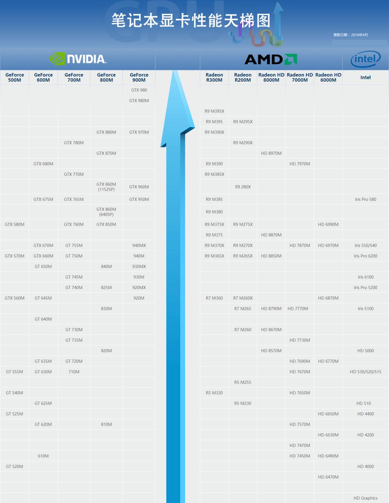 当前有三个主要的图形卡阵营,分别是NVIDA图形卡,AMD图形卡和内置在Intel处理器中的核心图形卡. 其中,NVIDA显卡在笔记本领域占有最大的份额,其次是AMD笔记本显卡,最后是内置在英特尔处理器中的核心显卡,在笔记本图形市场中所占份额很小.