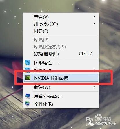 第一步是在计算机桌面的空白处单击鼠标右键,然后选择[NVIDIA控制面板],如下图所示;