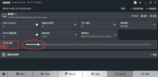 成功很快!看一下驱动程序,找到下面的XX缩放,我将其圈出. 因为我使用HDMI,所以它是HDMI变焦,无论您使用哪个端口都是变焦. 现在,点击并按住小白球并将其向右拖动至1%