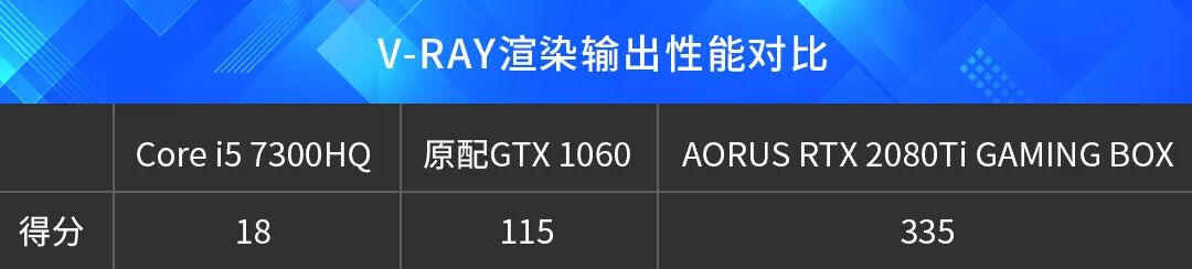 当然有帮助! RTX 2080Ti的CUDA加速性能非常强大,可以极大地提高3D渲染输出和视频编码的效率(从测试中我们可以看到AORUS RTX 2080Ti GAMING BOX在3D模型渲染输出中的性能约为其的3倍. GTX1060. 它是Core i5 7300HQ的19倍!),也是设计人员的高效生产工具. 设计人员可以选择轻薄的笔记本电脑和AORUS RTX 2080Ti GAMING BOX以及NVIDIA STUDIO驱动程序,以创建功能强大的设计人员生产力平台!