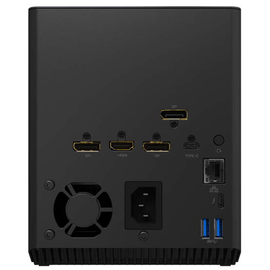 AORUS RTX 2080Ti GAMING BOX也是一个高速扩展坞,在机身背有非常丰富的扩展接口