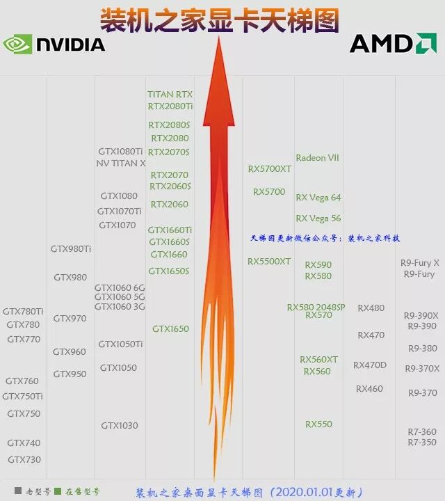 图形卡梯形图的精简版主要是近代产品. 当前,对于新安装的计算机,N卡首选RTX20系列和GTX16系列新一代图形卡,而A卡则选择RX5000系列和RX500系列.