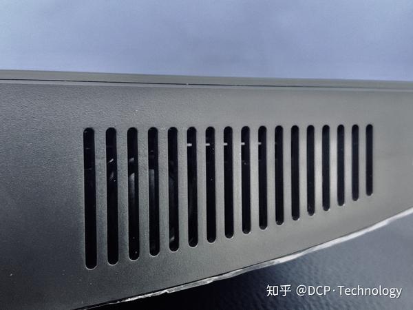 背面的散热孔非常大,贯穿整个背面. 尽管这种设计有利于散热,但也更容易积聚灰尘,如果灰尘进入室内,清理起来也不是那么容易.