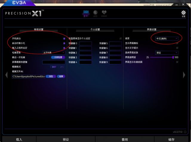 从EVGA百度官方网站上下载的最新版本是0.3.19.0. 安装后,不必担心. 单击右上角的设置. 新版本已经支持中文. 将语言更改为中文. 然后,一般设置中的启动启动是最小的. 在加载之前,请检查所有这三个项目.
