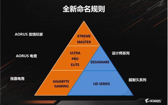 技嘉也是前三大品牌之一. 目前,技嘉的消费级主板系列主要是超耐用系列,Aorus系列,游戏系列和设计师(DESIGNARE)系列. 当技嘉没有发布Aorus系列时,它始终是“耐用”系列,涵盖了从低端到高端的整个产品线. 型号命名也非常混乱,消费者难以识别. 但是,技嘉在过去两年中重新设计了主板命名系统. 如下图所示,它在金字塔的顶部. 该系列更加高端.