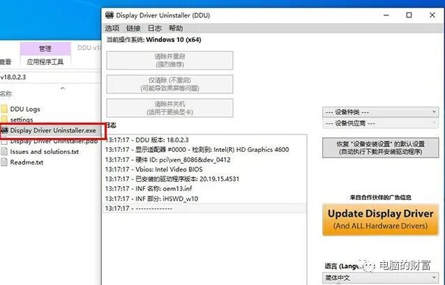 手动删除比较麻烦,可能无法完全删除,因此我们可以使用驱动程序卸载工具,即“ DDU图形卸载程序(Display Driver Uninstaller)”. 要获得此工具,我们可以在微信上搜索“ Installation Home”. 注意“技术”并回复“ DDU”以获取下载地址. 下载显示驱动程序卸载程序工具后,我们双击运行“ Display Driver Uninstaller.exe”应用程序,如下图所示.