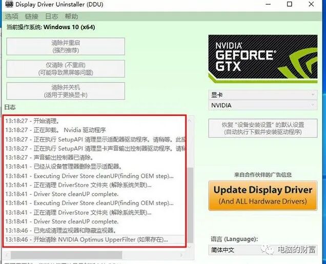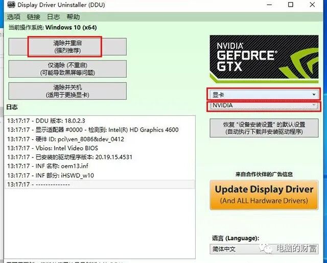 打开Display Driver Uninstaller软件界面后,我们在右列的选项中选择“图形卡”,例如,我们是NVIDIA图形卡,我们直接选择“ NVIDIA”,我们选择清除并重新启动.