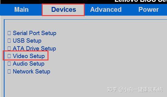1、引导进入BIOS,找到[Devices]-[Video Setup]选项,然后按Enter键;