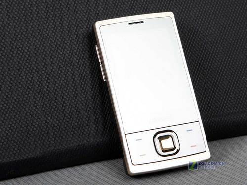 由于这款手机是大屏幕触摸式设计,因此整个手机上只有功能按键存在,按键的设计非常传统,左右软件、接听/挂机加上五向圆盘的设计。但是比较吸引我们眼球的是这款手机的导航键设计,宝石切割状的导航键看上去使得这款手机贵气十足,辅以香槟金的配色,使得其看上去非常的耀眼。