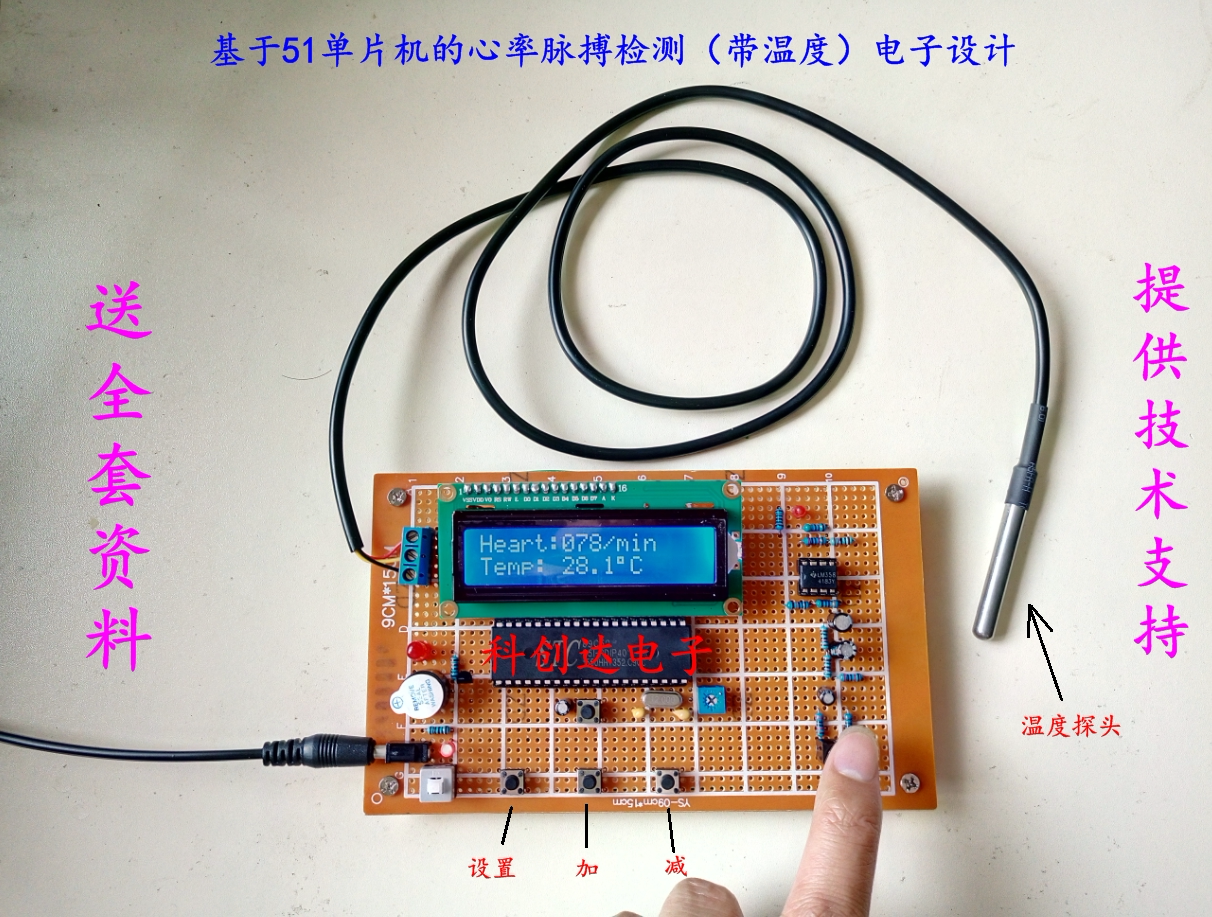 51课程单片机心率计脉搏计人体计体温计数字温度电子设计成品