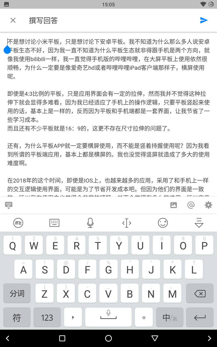在2018年的这个时间,即使是IOS上,也越来越多的应用,采用了和手机上一样的交互逻辑使用界面,可能是为了节省开发成本吧。但因为他们的界面是一致的,所以我在使用中也觉得会非常的顺畅,并不会觉得有多么的难用,所以究竟是为什么大家一直在说平板生态不好了,毕竟手机上的应用,我在平板上使用的都挺舒服的呀。