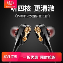 四核双音圈耳机入耳式耳塞手机通用有线控通话高性能耳机游戏吃鸡苹果华为vivo小米oppo安卓重低音炮
