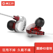 潮工坊 D3重低音炮耳机入耳式适用手机小米魅族oppo小米vivo通用女生男挂耳运动耳塞式6线控带麦耳麦HIFI音乐