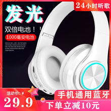 无线蓝牙音箱头戴式发光重低音炮游戏运动型跑步耳机电脑相机通用插卡男男生韩版帅气潮OPPO小米魅族苹果包耳