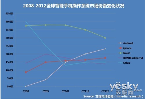 数据显示,苹果2011年最篶lass="keyword_link" href="http://product.yesky.com/shaver/3ge" target="_blank">3服月乘3700蚢 href="http://product.yesky.com/mobilephone/apple/" target="_blank">iPhone,超过RIM过去3溉的晨总和。在截止3月3日的财季内,RIM的黑莓手机晨?10停另外,RIM尽管仍然在尽力抢占消费行业,但是仍受困于昂贵的费用支矷M在智能手机领莹争先,其今年推砤 href="http://product.yesky.com/tabletpc/" target="_blank">平板手机PlayBook销量也有停滞不前,RIM目前依然未能顺利发力平板手机行业。同时,RIM股价让投资者心灰意冷。2011年,RIM股价大跌幅度达到75%,市值账300亿美元。而应用开发者依旧不愿为黑莓和PlayBook开发应用。