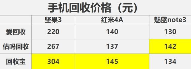 为了使这三款手机的售价更高,我比较了在这三个回收平台上回收的同一款手机的价格. 回收宝上的螺母3价格最高,为304元;魅蓝Note3的回收价格估计略高,为142元,剩余的红米4A将移交给Ai Recycling进行处理. 通过简单的比较,我们发现爱回收是最著名的,但是回收价格低于其他两个平台.