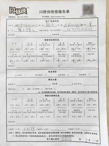 回收宝藏要求员工监视整个过程并显示其徽章. 回收宝没有APP,并给了我一份纸质维修单. 工作人员通过人工检查确认了维修单上的每一项,最后在双方确认正确无误后让我签字.