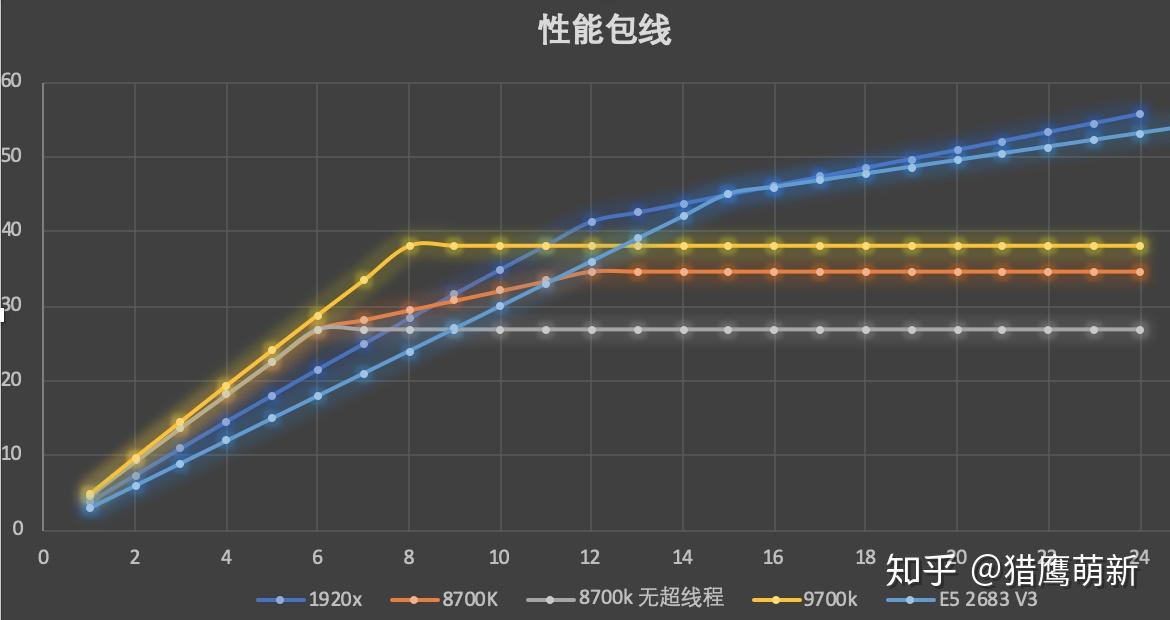 由于Amdahl的法律也受到限制,因此只考虑了两种情况,即全核工作和单核工作,但是在实际使用中,线程数一直在变化,有时可能会变满. ,有时甚至三到四个核心工作. 此时多核和单核,我们可以制作一个图形,x轴是其线程数,y轴是其性能. 这样,您可以了解不同线程数(类似于飞机的飞行范围)下的性能. 当然,这张图片只考虑了内核数量和频率之间的关系(AMD的IPC低了10%),而没有考虑内存延迟.
