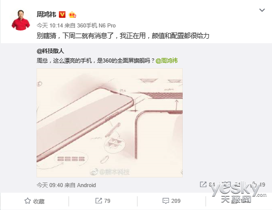 值得一提的是,微博尾巴似乎是360手机N6 Pro. 换句话说,手机是即将发布的360全屏新机.