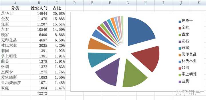 可以看出,芝华士沙发市场的竞争格局稳居第一.
