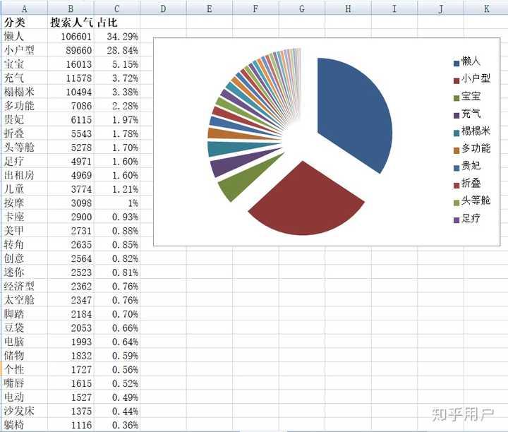 反映了消费者想要购买哪种沙发,在这里您可以看到许多细分市场的细分需求. 可以看出,“懒散的小公寓”是消费者需求的焦点淘宝大数据的应用,这恰恰是年轻网购人群的消费特征. “婴儿,充气”是一个值得注意的需求点.