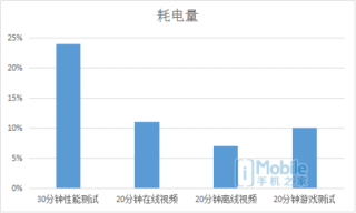 HTC One X9续航测试时电池容量为87%起,测试时声音为静音,屏幕亮度为最高;性能测试结束后,剩余电量63%,耗电量24%;视频20分钟剩余电量52%,耗电量为11%;离线视频播放20分钟,剩余电量为45%,耗电量为7%;持续游戏20分钟耗电量为10%,手机整体耗电量控制较好。
