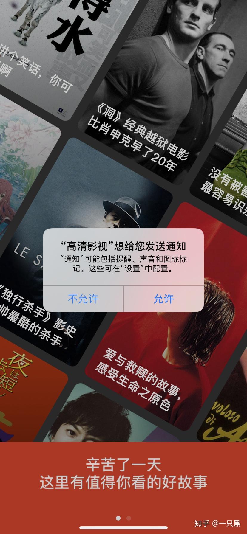 接下来高清影视app,它应该是关于位置服务的,然后是关于“我想向您发送有关XX应用程序的通知”的内容