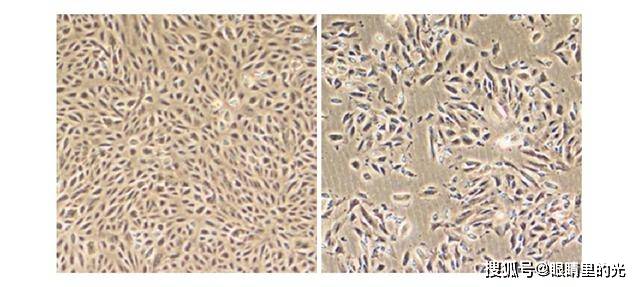 类似[17]在2016年,马英学等. 为了研究人视网膜色素上皮细胞分泌的外泌体与NLRP3炎性体之间的相关性,使用了距离细胞35cm处的波长为448nm±24nm的蓝色LED灯. 连续照射6h即可制成蓝光诱导的视网膜色素上皮细胞模型. 在光学显微镜下观察,发现正常的视网膜色素上皮细胞单层生长. 细胞呈梭形或多边形,成簇生长,如融合可能是典型的铺路石. 蓝光诱导的视网膜色素上皮细胞被光氧化损伤,增殖活性明显减弱. 在光学显微镜下,细胞肿胀,细胞体失去多边形形态,并且一些细胞体变长,显示成纤维细胞的形状,并失去正常的细胞形态. 可见450 nm以上的蓝光对视网膜色素上皮细胞有明显损害.