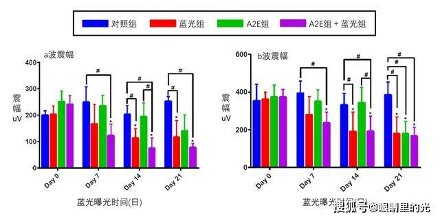 人们注定要继续衰老,在此过程中产生的脂褐素(老化色素)的浓度将继续增加,并且研究表明,在脂褐素的存在下,过量的电子蓝光照射会加速细胞死亡. [6]在2019年,林成辉等人向大鼠的眼睛注射了30μM的脂褐素,然后暴露在蓝光下,发现ERG(视网膜电图: 测量视网膜光反应的电信号)的a和b峰值降低脂褐素和蓝光的照射更大,这将加速视网膜感光细胞,视网膜色素上皮细胞和双极细胞的损伤. 关于这一领域的研究,目前尚无许多实验研究. 在脂褐素存在下,蓝光是否真的能加速细胞死亡,还需要更全面,更深入的研究.