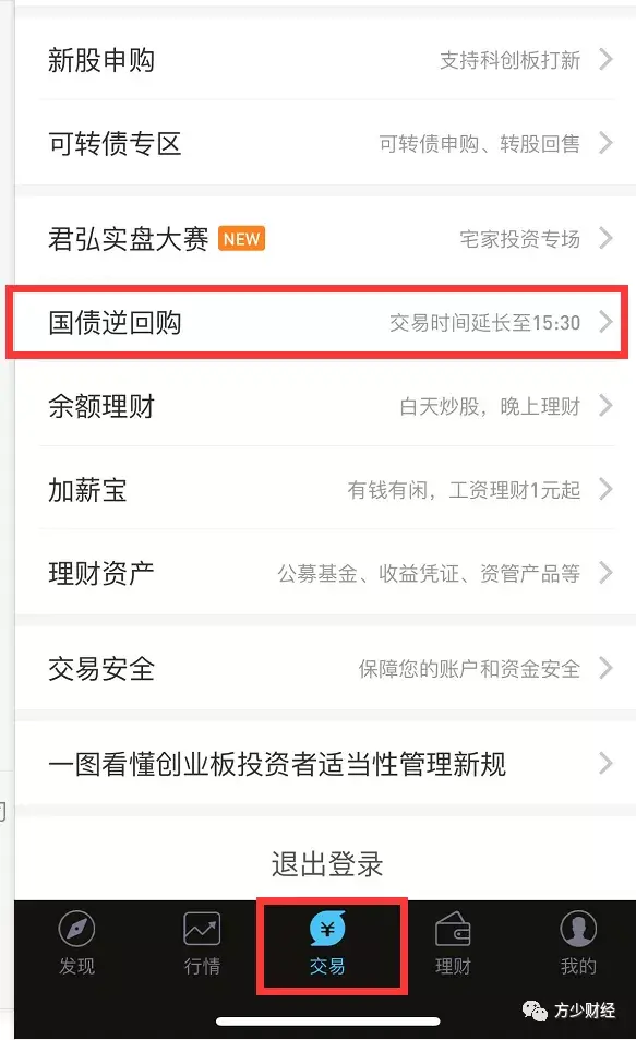 第2步: 在[交易]界面上,选择“反向回购国债”