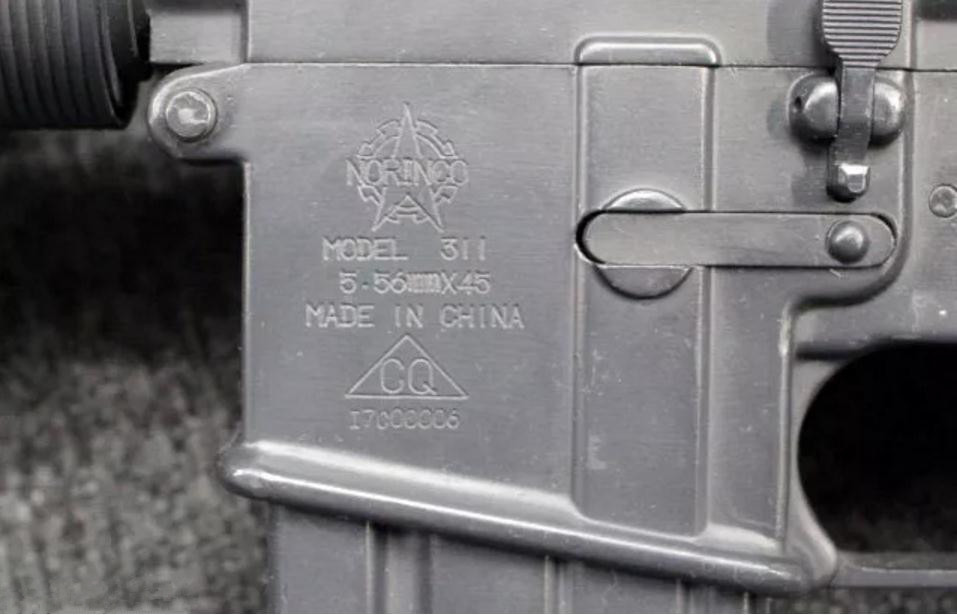 有关此支的一些信息在外壳上标出. 顶部是North Industries的五星级商标(现已更改);第二行是“ MODEL 311”; CQ步的别称;第三行是口径m16机匣,CQ步发射5.56×45mm北约. 第四行是中国制造的“中国制造”. 最后一行是CQ步徽标m16机匣,生产编号为“ 17000006”,编号非常靠前.