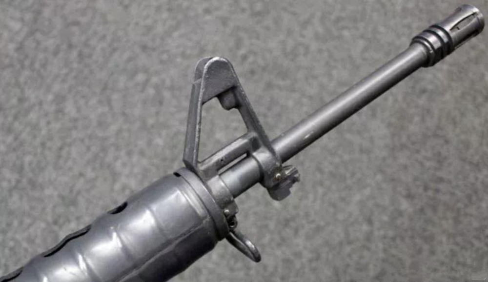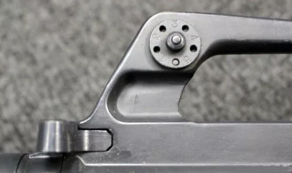 图为原始的M16A2步. 请注意防护罩上方的散热孔. 原始的M16A2散热孔是一排独立的圆圈,CQ步散热孔连接在一起,形成类似于“ 8”的形状. 形状.