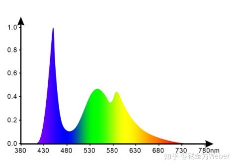 在计算机屏幕上的可见光中,430-480nm的短波高频蓝光具有很高的峰值. 从光谱峰值的比率来看,蓝光比旁边的绿光高约60%.