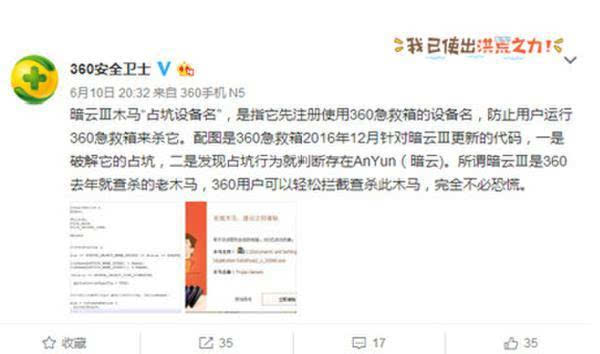 根据360安全卫士的官方微博消息,360最早于2016年12月16日捕获了Dark Cloud III,并尽快进行了调查和杀害. 这只是360去年就能杀死的一种旧病毒,用户不必惊慌.