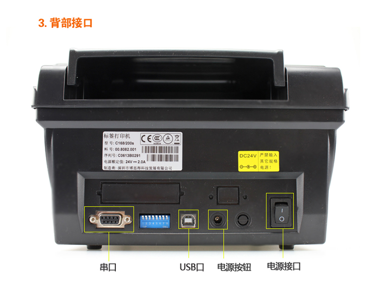 5、postek C168 200S标签打印机背部接口(如图)