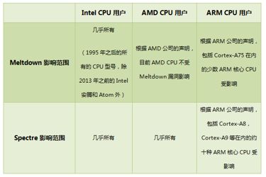 附件: CPU漏洞的具体影响范围