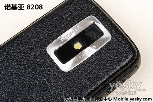 诺基亚8208的机身背面采用皮质背板,其起到防滑、防油污等作用,手感出众,并且提高了手机的整体质感与品味。