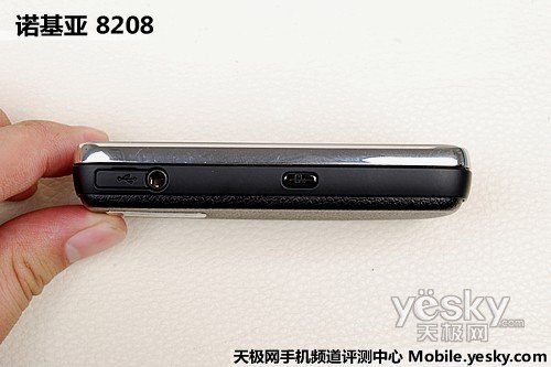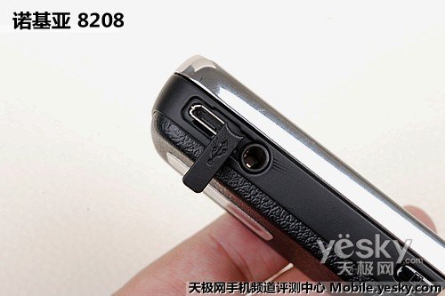 诺基亚8208的机身四周使用了柔化磨砂材质,机身左侧以上而下设计了I/O接口、3.5mm耳机接口和录音快捷键,I/O接口采用比较常见的B型miniUSB,融通性不错。