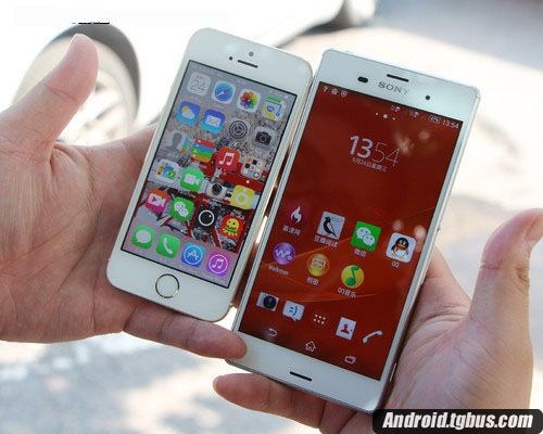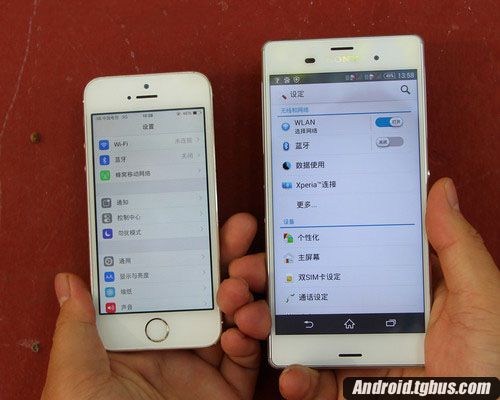 索尼Z3和苹果5 s在最大亮度下显示效果对比