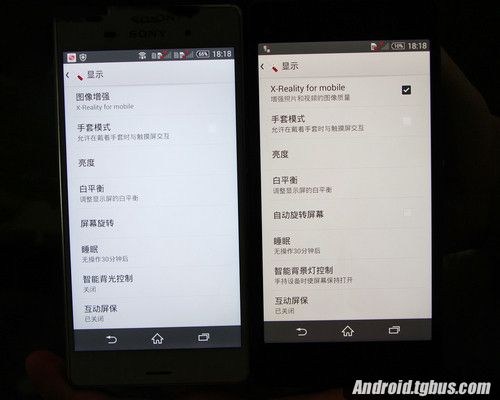 索尼Z3(左)与索尼Z2(右)在最大亮度下的屏幕显示对比