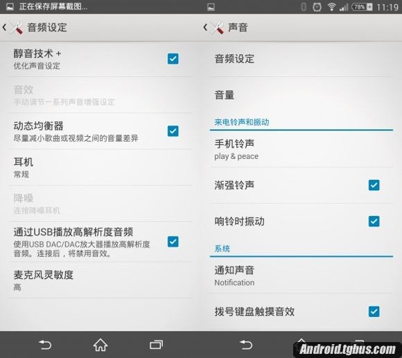 Xperia Z3在音频功能上并没有新增多少功能,但在界面细节上优化简便了不少。其中Xperia Z3针对索尼移动目前在售耳机还有相应的特别调音,可以直接选择。此外让人吐槽的是,Xperia Z3新增的DSEE HX功能并不能在系统音频界面中选择,而必须要在Walkman音乐播放中才会出现。此外,在Xperia Z3上依然默认支持NDR-NC31E降噪耳机与STM10高清麦克风,但细节设置则分别在调音与麦克风灵敏度上进行设置。