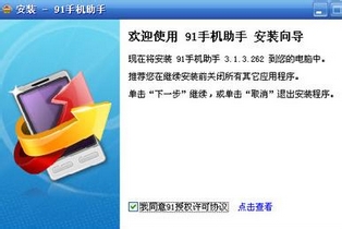 2、安装守护程序:第一次安装pxl格式的软件,91手机助手会提示你先安装91手机助手的守护程序,安装或者升级。