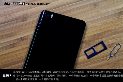 机身侧面,配备了一体式音量按键和电源键,并且在按键周围也进行了高速CNC倒角切割。卡槽方面采用了microSIM卡+NanoSIM卡双卡双待设计,并且用户可以在系统内自由切换究竟那张卡是上网卡、哪张卡负责打电话。小米Note支持移动联通所有4G/3G/2G网络,电信用户则需要等一等了。