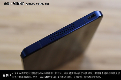 机身底部方面,配备了microUSB充电和数据接口,小米Note和小米4相同,支持高通的快速充电技术,支持5V/2A、9V/1.2A、12V/1A充电规格。官方声称可以在半小时内为手机充满50%电量。并且底部外放口采用了CNC切割,而雷军也在现场表示,小米Note不仅支持硬件级别的Hi-Fi(我们后面会有解读),并且使用了SmartPA技术提升了外放效果。