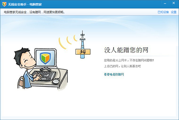 答: 启用电脑管家无线安全助手,有效防止蹭网,从而确保网速更快更顺畅。