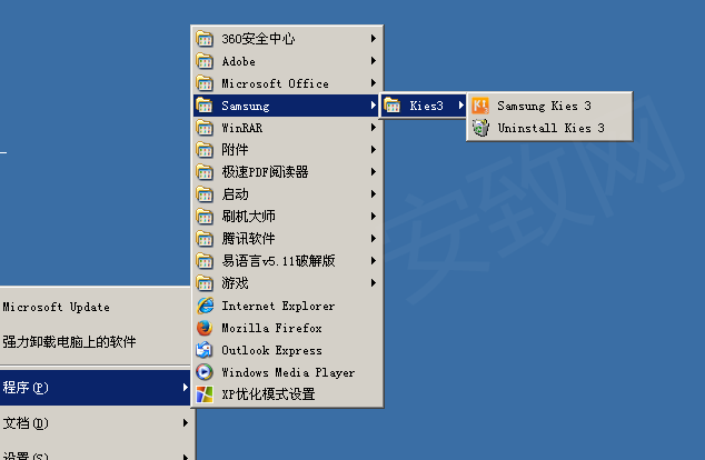 1、下载后安装到电脑,我们可以通过【开始】---【Samsung】---【Kies】来找到并运行:
