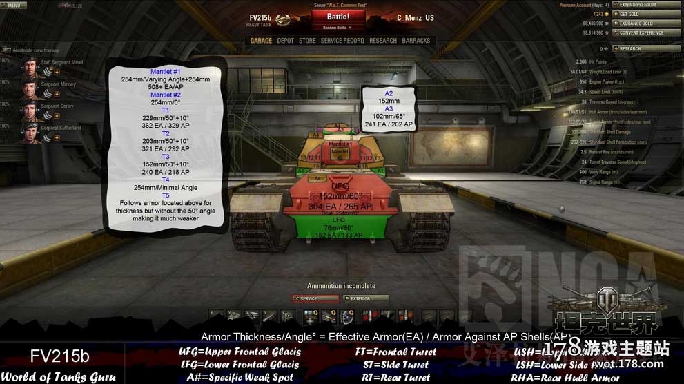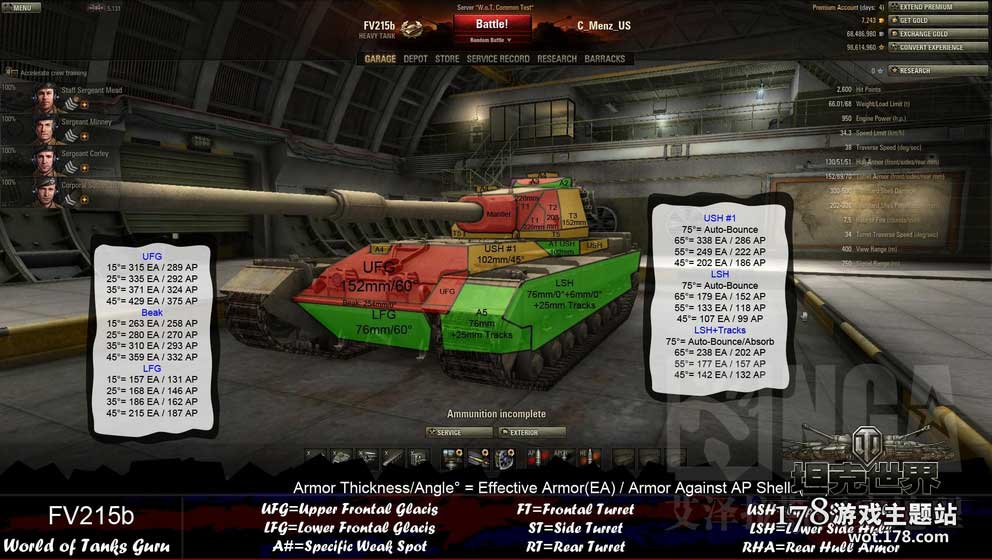 自从8.2对装甲做了明显改动之后,正面的FV215b整体的装甲是够用的。首上和炮塔比之前硬了很多,提供了充足的防御力。